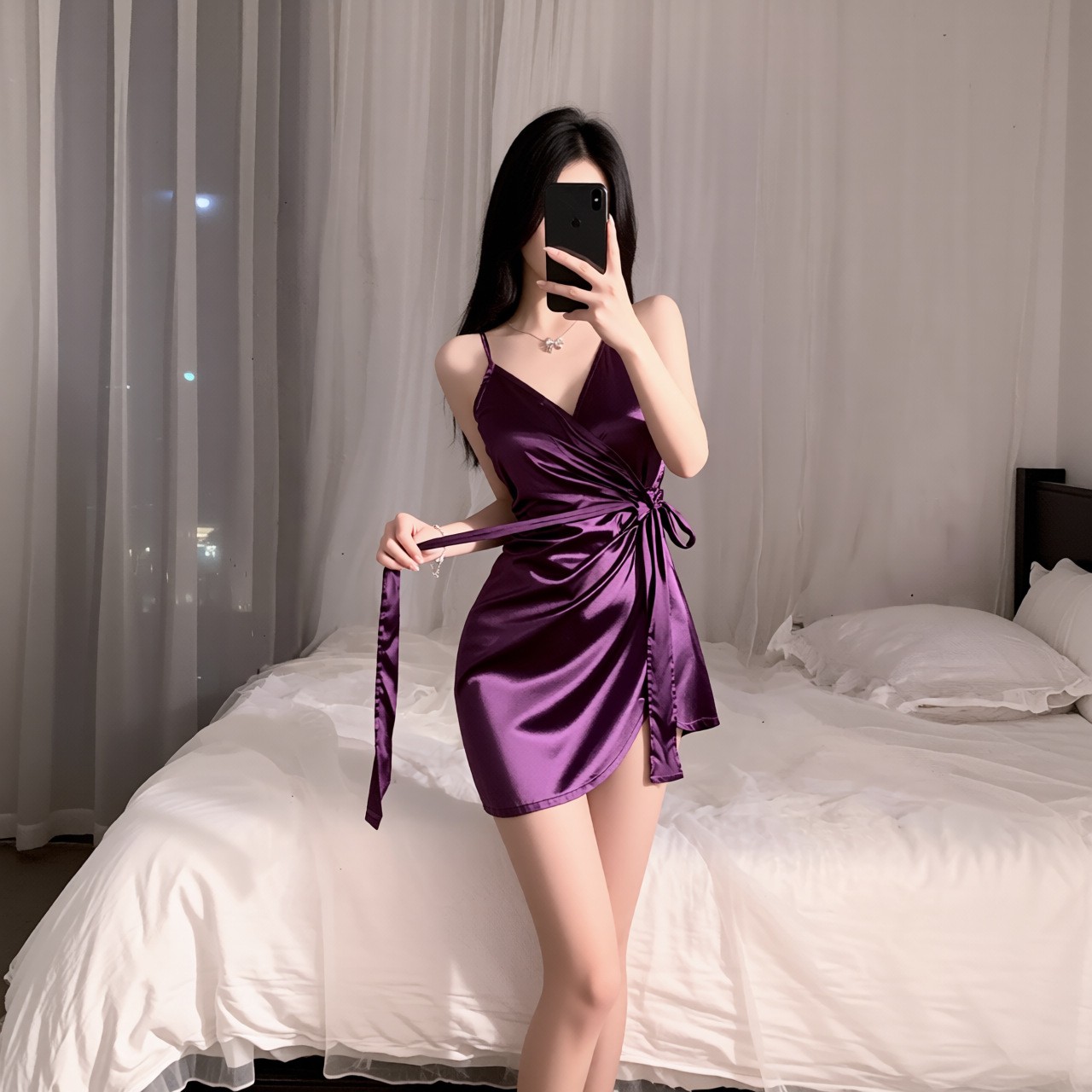 情趣睡衣性感气质缎面系带吊带睡裙V领夏季